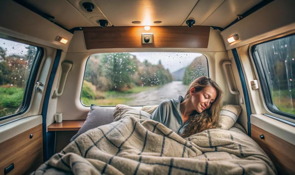 Die Prüfung umfasst die Kontrolle auf Feuchtigkeit im Innenraum des Fahrzeugs sowie die Überprüfung auf mögliche Leckstellen an den mechanischen Verbindungen (z. B. Dach, Seitenwände, Boden) und an Fenstern, Türen und Klappen.