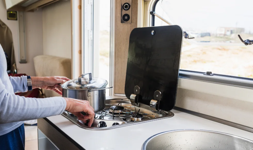 Alle Absperrhähne im Wohnwagen oder Wohnmobil werden geöffnet und auf ihre Funktionsfähigkeit überprüft.