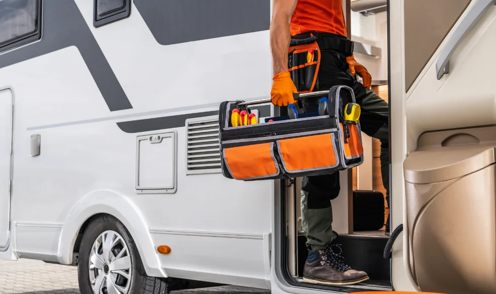 Die Rohrleitungen werden in unserer Wohnwagen Werkstatt in Niederösterreich auf die ordnungsgemäße Befestigung und ihren Zustand (z. B. Korrosion) überprüft.